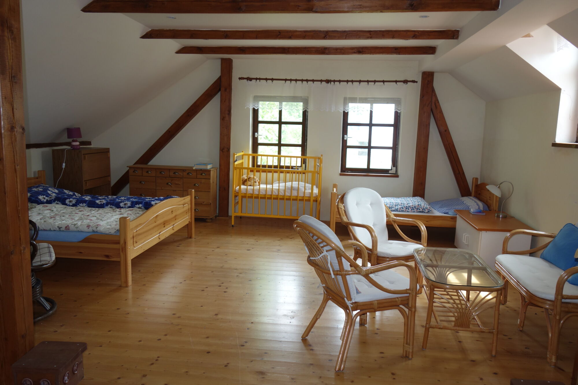 K pronajmutí jsou celkem 4 apartmány s kapacitou 2x5 osob, 1x4 osoby a 1x2 osoby. Můžete si pronajmout jen jeden apartmán nebo se domluvit více rodin, obsadit všechny apartmány a užít si dovolenou ve své partě.